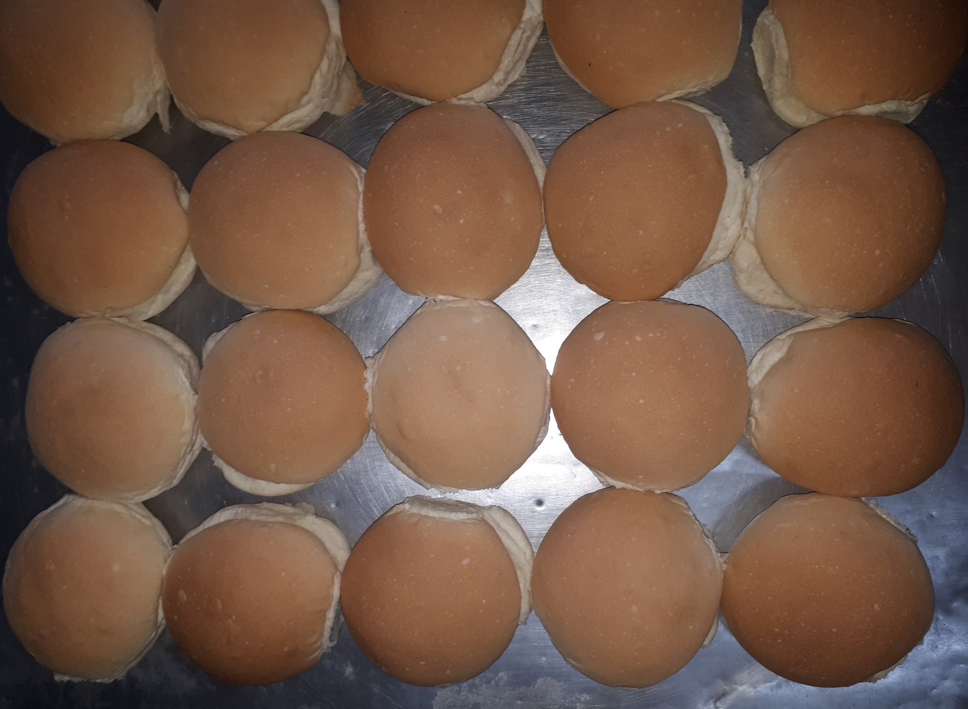 Pão de Hambúrguer mini 25 gramas, placa com 48 unidades.